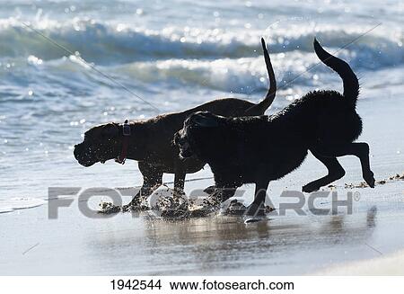 Zwei Hunde Spielender Wasser Strand An Punta Paloma