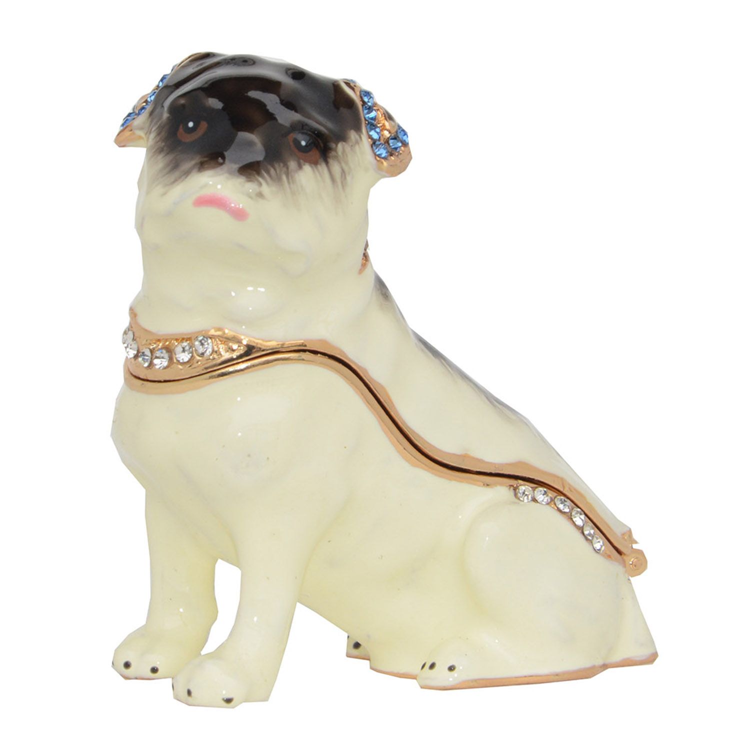Grosshandel Crystal Bejeweled Pug Trinket Schmuck Box Emailliert
