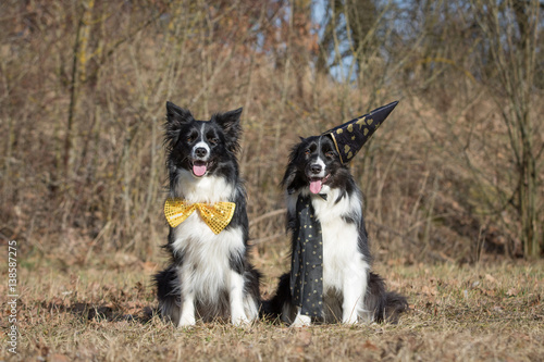 Border Collie Hunde Mit Schleife Und Hut Buy This Stock Photo