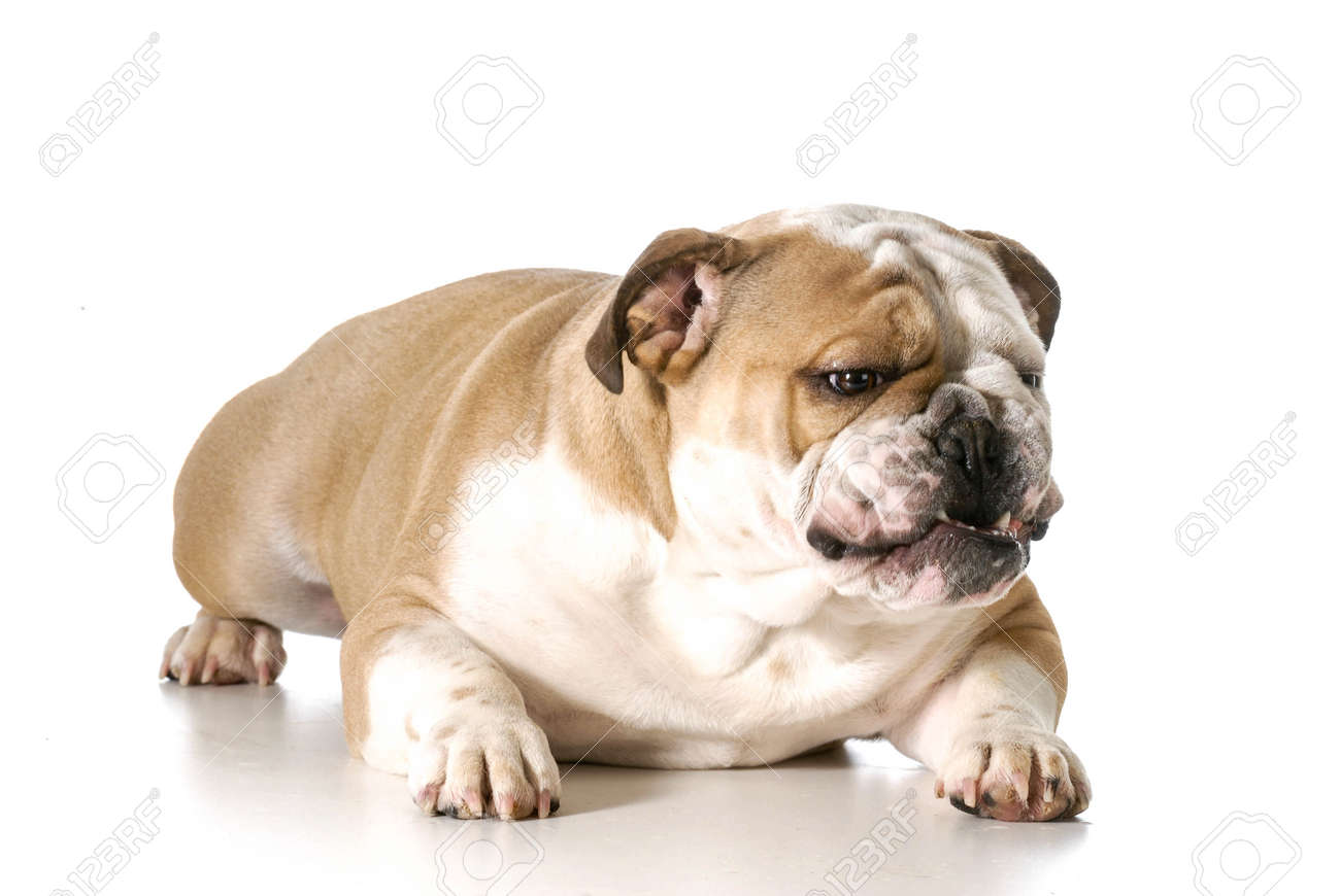 Aggressiv Wirkenden Hund Englisch Bulldogge Mit Zahne Zeigen Und