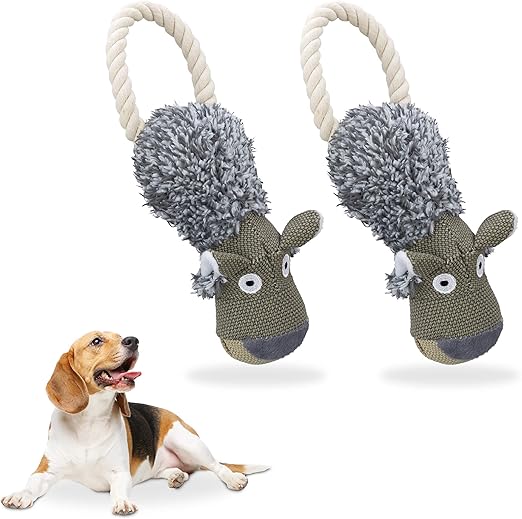Relaxdays 2 X Hundespielzeug Wolf Quietschend Mit Seil