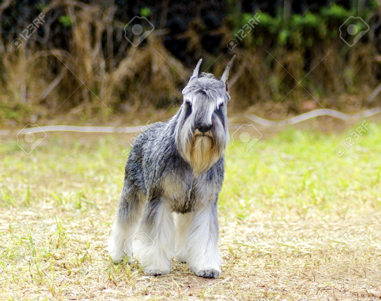 Eine Kleine Salz Und Pfeffer Grau Zwergschnauzer Hund Stehen Auf