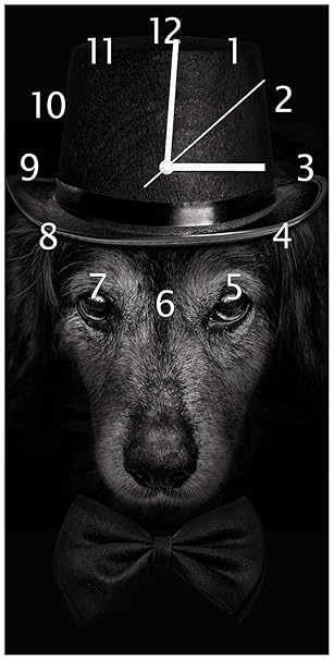 Wallario Design Wanduhr Eleganter Hund Mit Zylinder In Schwarz