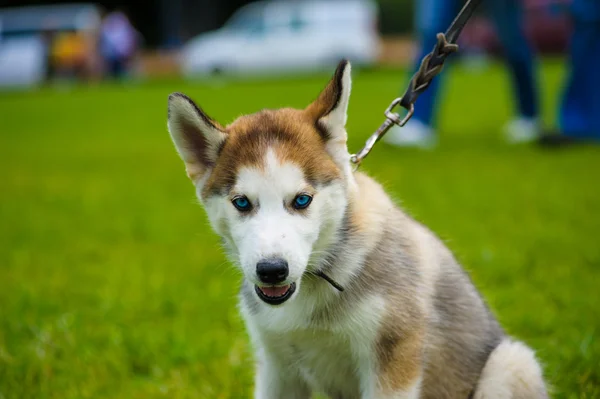 Cute Siberian Husky Welpen Spielen Spielzeug Auf Gras Susser Hund