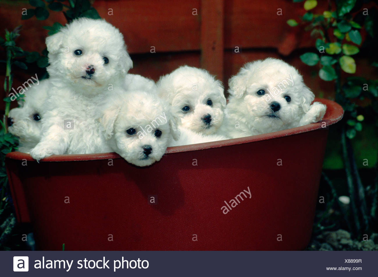 Bichon Frise Welpen In Flower Pot Irland Posing Stockfoto Bild