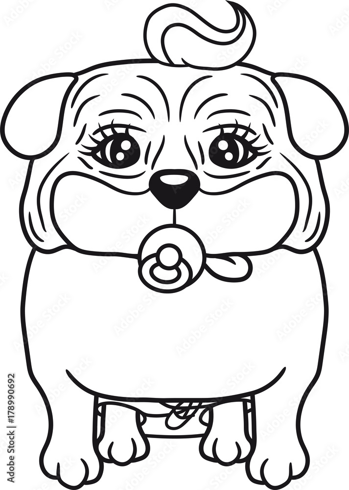 Gesicht Kopf Baby Nett Windel Schnuller Mops Klein Dick Hund