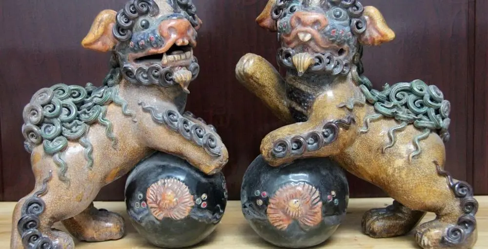 Freies Verschiffen Chinesische Keramik Wucai Porzellan Statue Foo