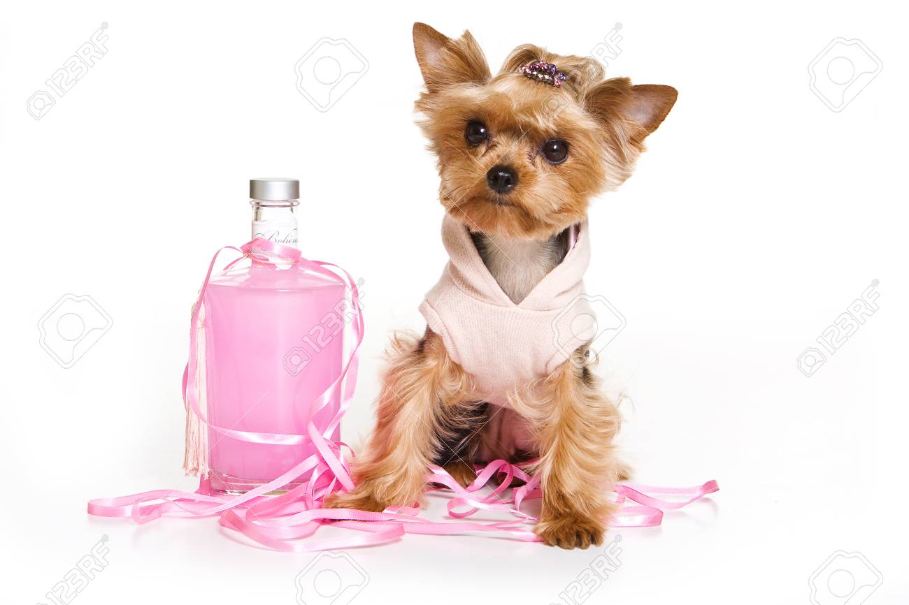 Glamorous York Hund Kleidung Isoliert Auf Weiss Lizenzfreie Fotos