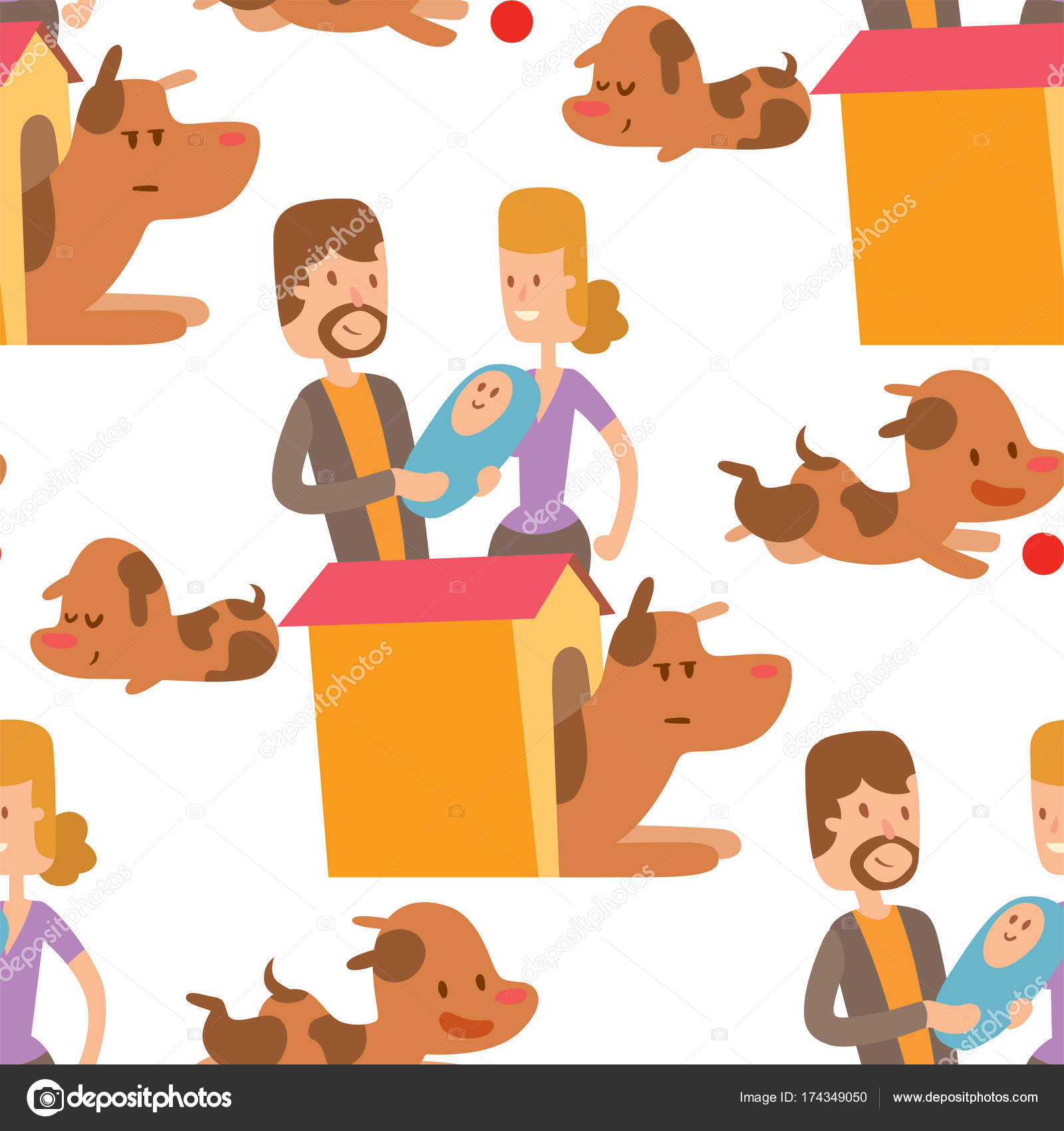 Vector Illustration Susse Hunde Und Menschen Zeichen Musterdesign