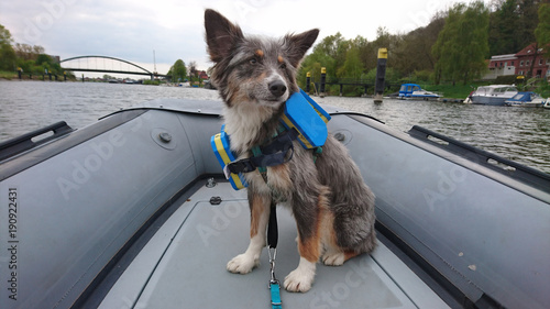 Hund Mit Schwimmweste Im Schlauchboot Auf Der Elbe In Hamburg