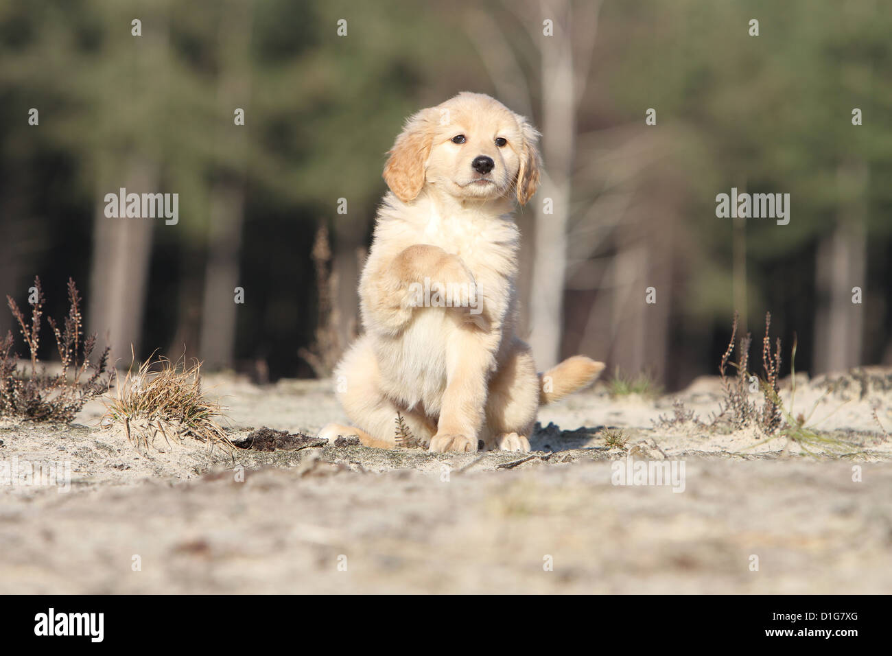 Blond Hovawart Sitting Stockfotos Blond Hovawart Sitting Bilder