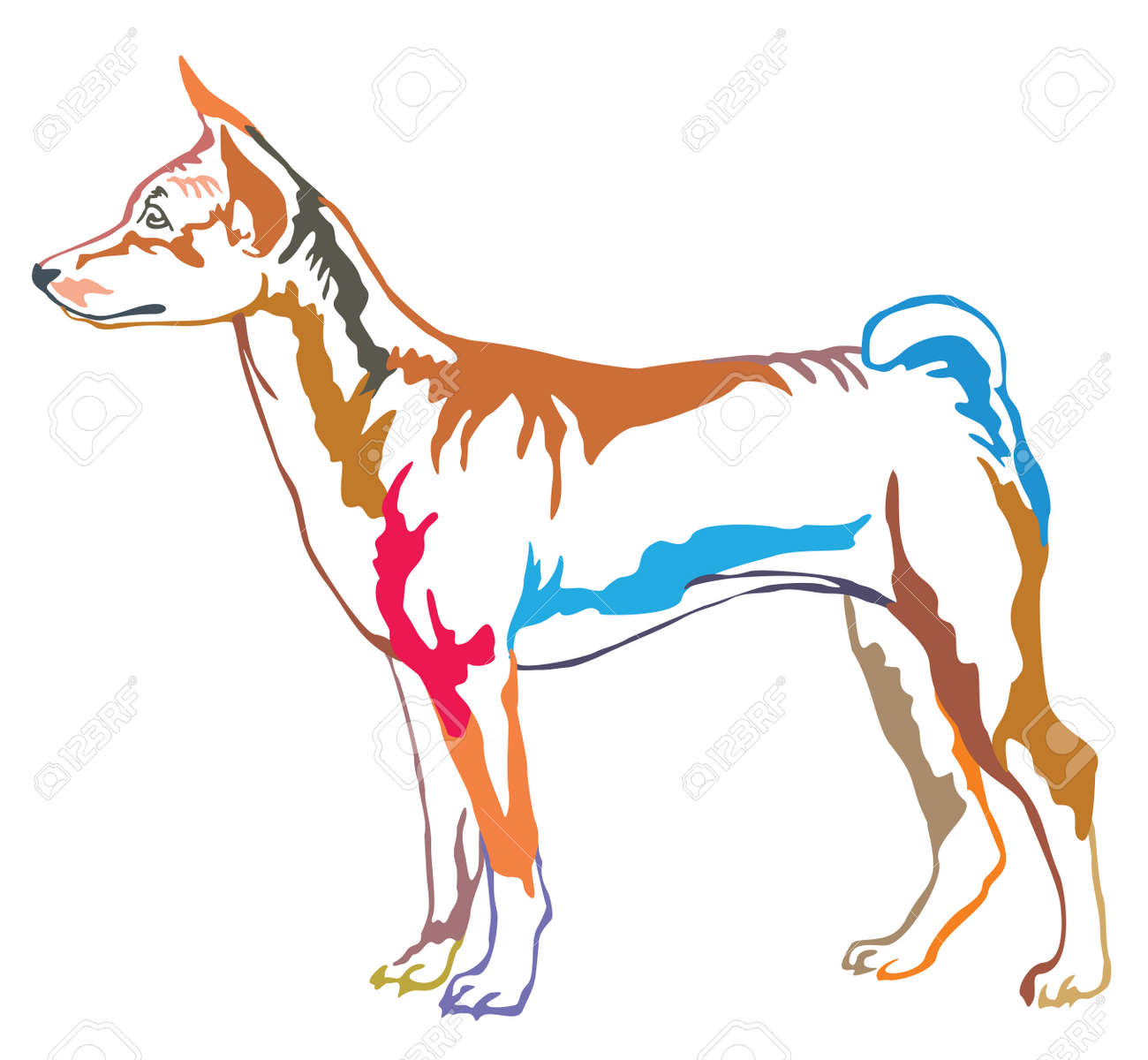 Bunte Dekorative Portrat Der Stellung In Profil Hund Basenji