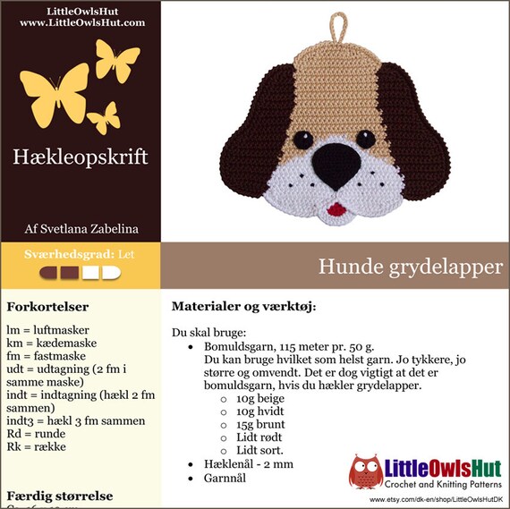161dk Hunde Grydelapper Haekle Opskrift Pdf Af Svetlana Etsy