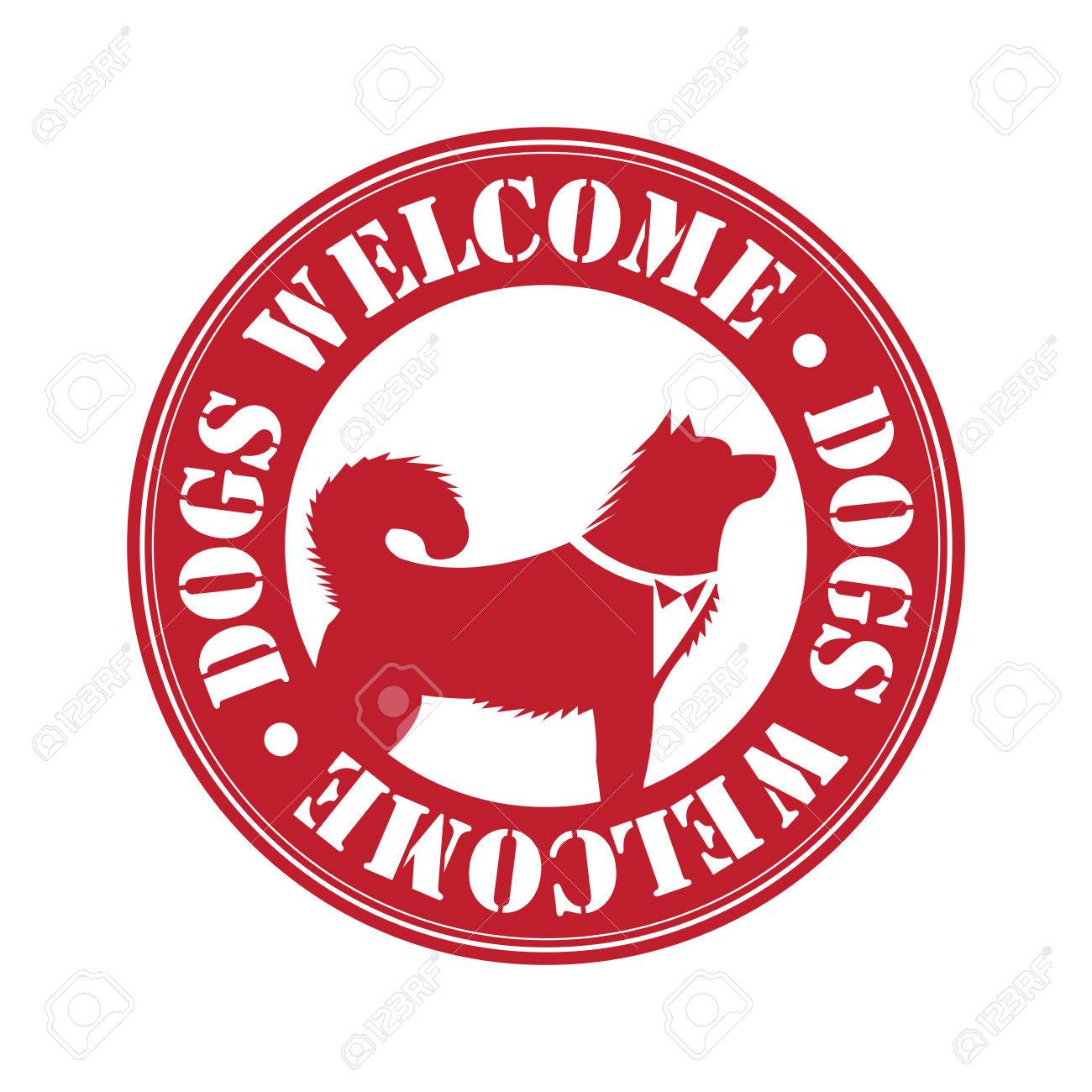 Red Circle Hunde Willkommen Icon Etikett Oder Aufkleber Mit Hund