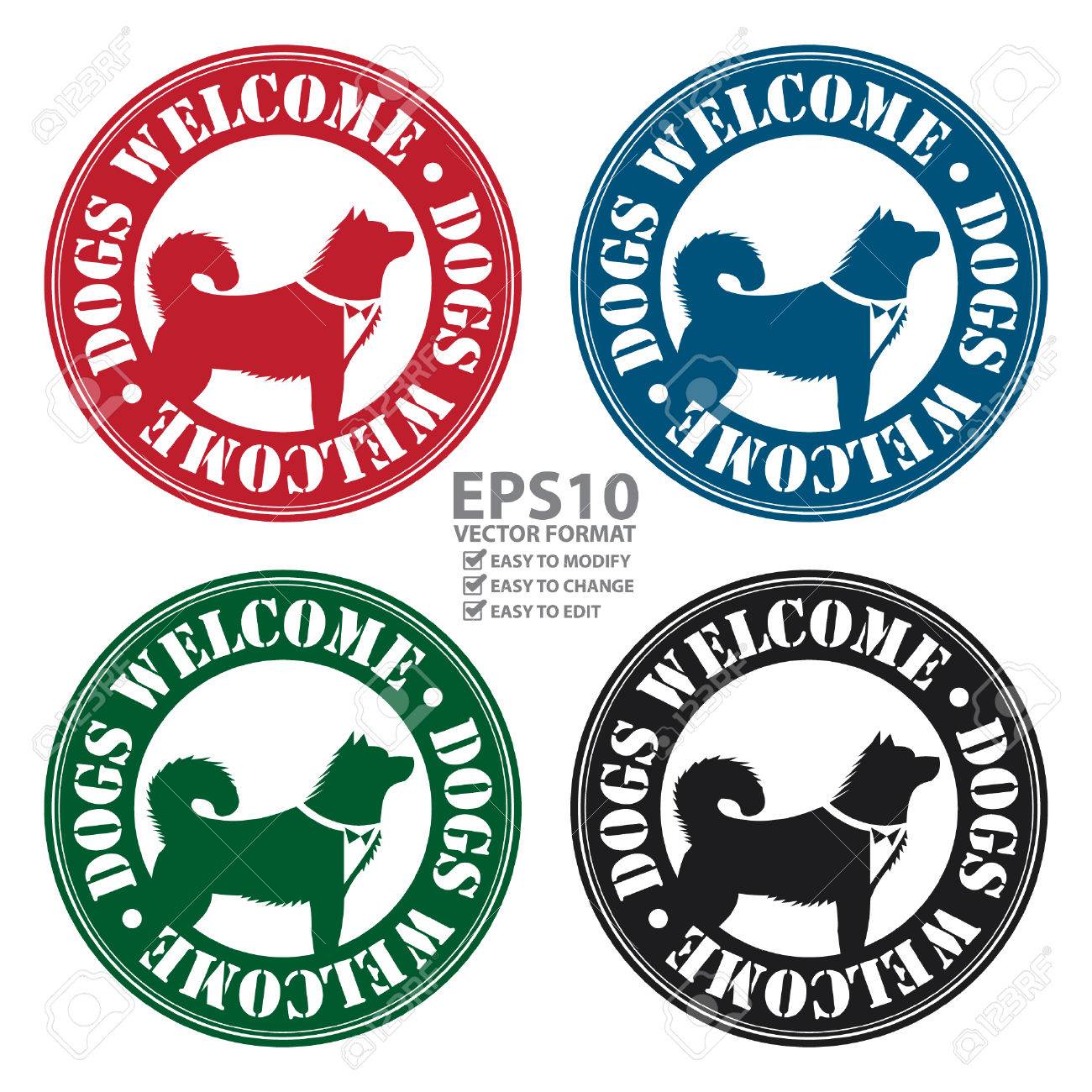 Vector Circle Hunde Willkommen Icon Etikett Oder Aufkleber Mit