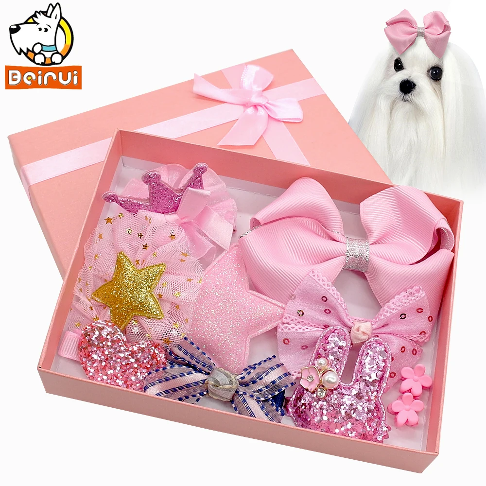 9 Stucke Hund Haarspangen Rosa Haar Bogen Handmade Hundesalon