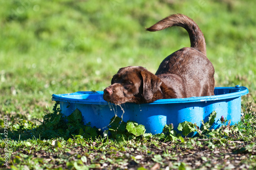 Labrador Schokobraun Badet In Planschbecken Haustier Hund